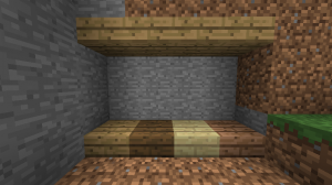 • Если поставить новые полу-блоки к потолку, они будут окрашены в обычное дерево.