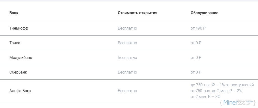 Сервис предлагает ознакомиться с перечнем популярных банков для сотрудничества. Это может быть Тинькофф, Точка, Сбербанк, Альфа и прочие. Банки представлены с указанием стоимости создания расчетного счета и тарифами на обслуживание. Изучив подборку актуальных решений, вы сможете подобрать оптимальный банк для открытия в нем расчетного счета для ИП. Для ознакомления с банками добро пожаловать на сайт.