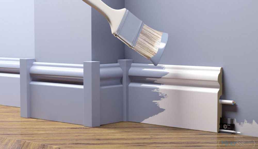 Широкие напольные плинтуса производят из МДФ. Сверху поверхность покрывается несколькими слоями специальной полиуретановой грунтовки. При желании можно подобрать цвет краски, подходящей под тон пола. Защитную планку можно покрывать любым видом краски – акриловой, латексной либо силикатной.